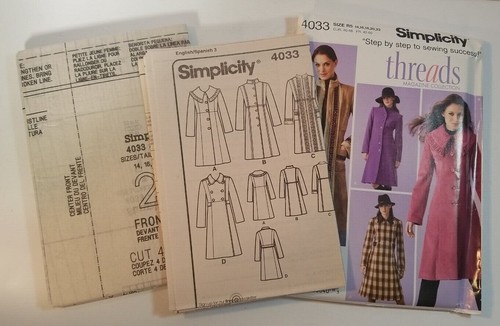 Simplicity Sewing Pattern 4033 Threads Magazine Misses Coat Size R5 14 22 39363300403 Ebay